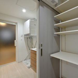 ユーティリティも可動棚収納で使いやすく