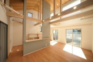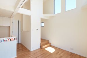 吹抜けと無垢床が明るく暖かい高性能住宅
