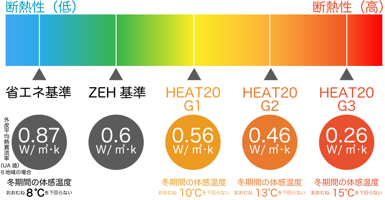アイディールでは冬期間の最低体感温度が概ね13度を下回らないG2グレードを標準の仕様としています。