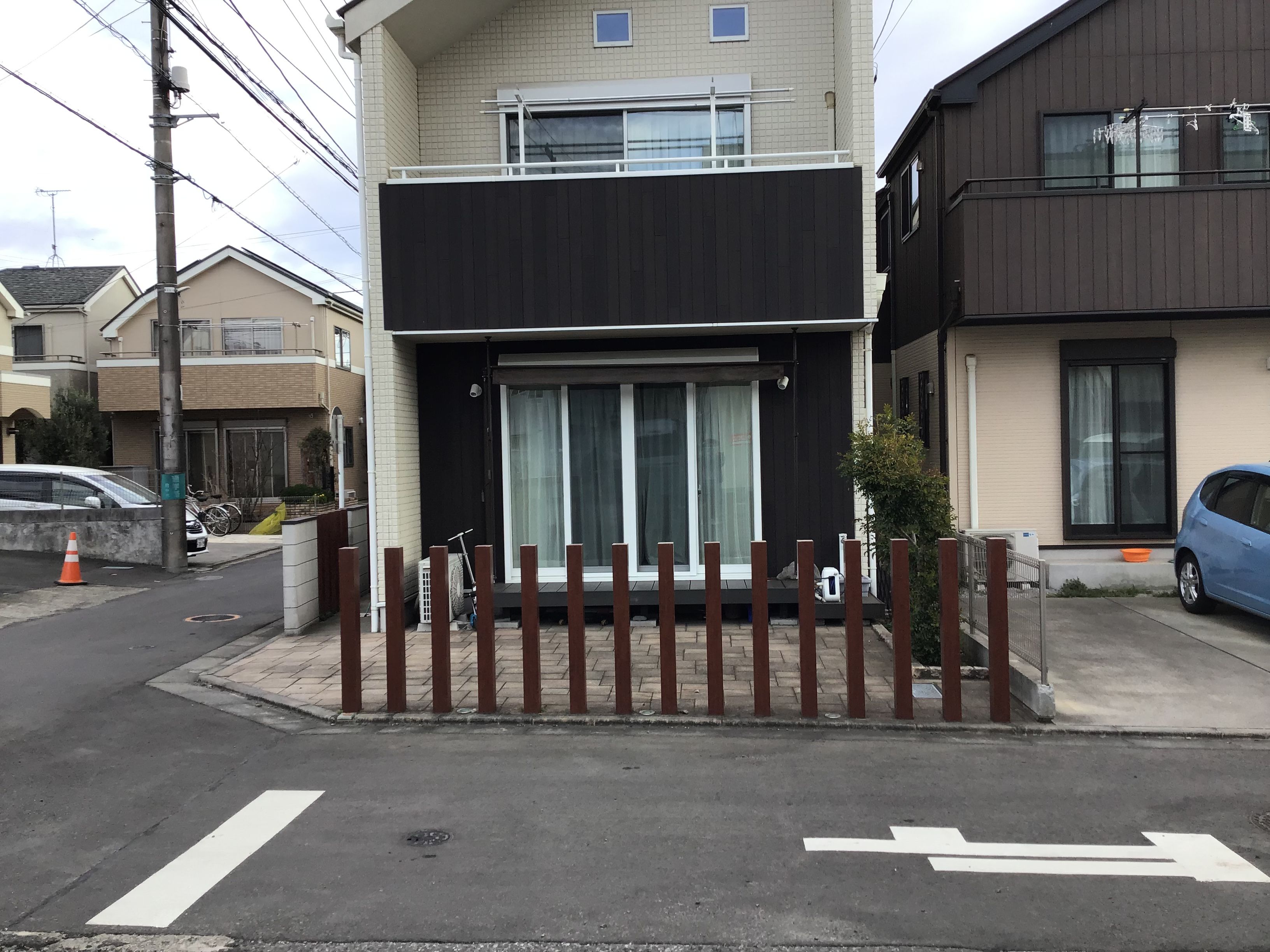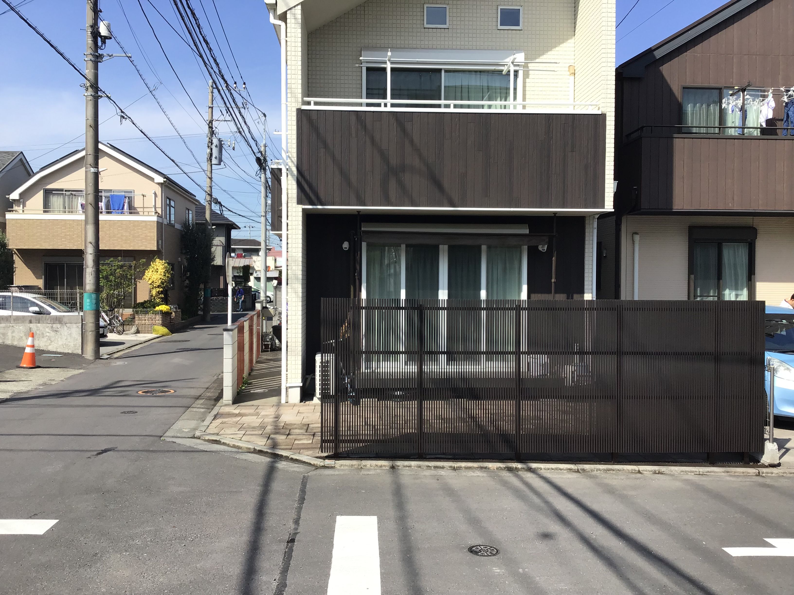 既存の枕木が劣化していたことに加え、お家にいる時間が増え道路からの視線が気になるとご要望を頂いたため縦格子を設置しました。